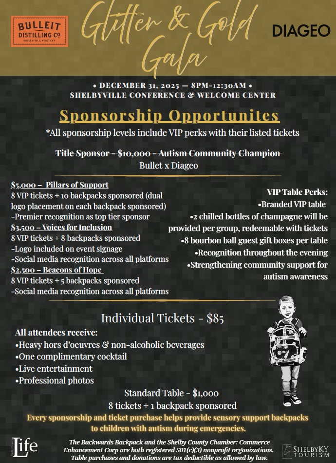 Ring in the New Year with us - an evening of celebration and giving in support of The Backwards Backpack & The Shelby County Chamber of Commerce.